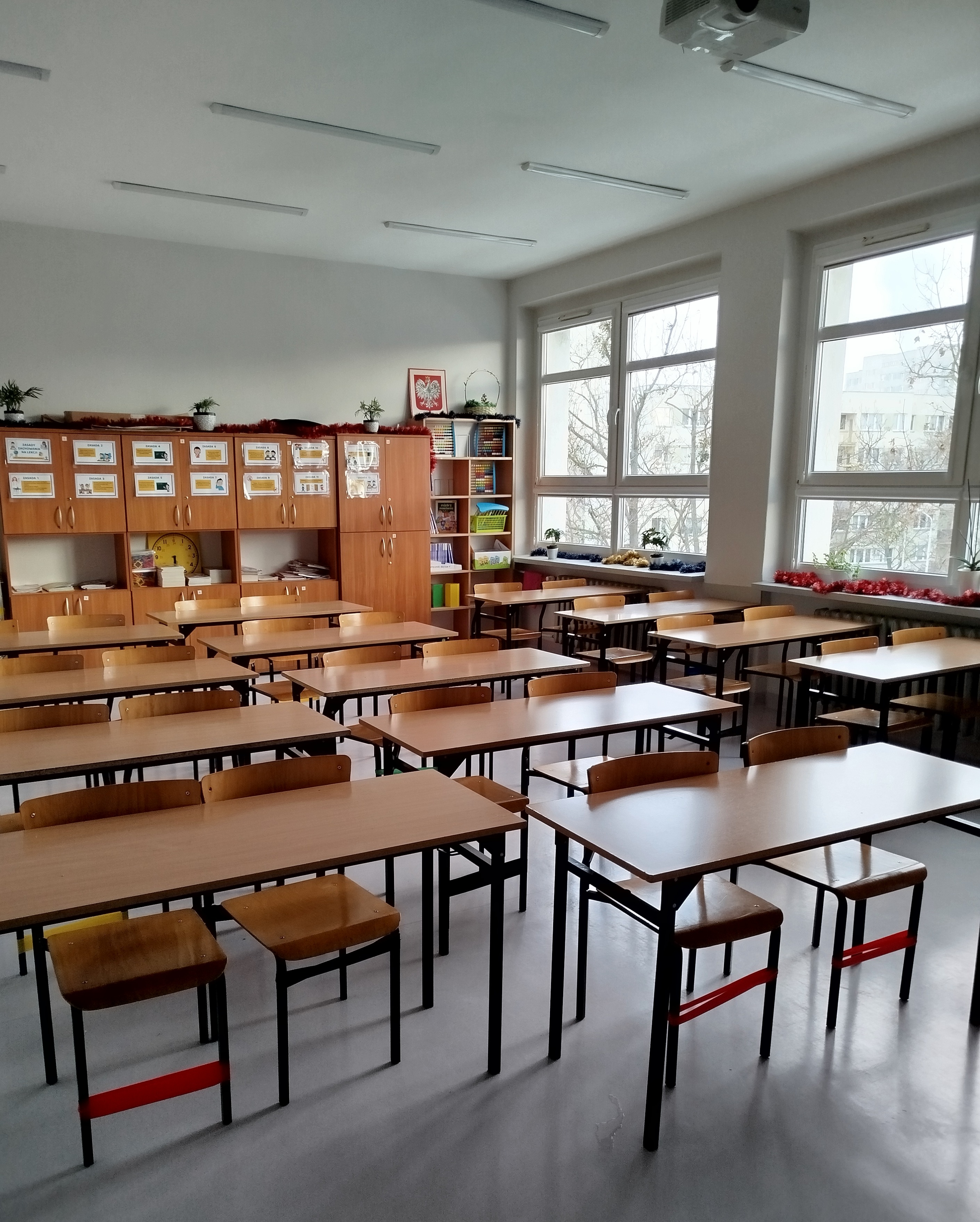 Z inicjatywy nauczycielki matematyki Pani Iriny , po ukończeniu szkolenia „Pozytywna dyscyplina”, na wybranych krzesłach w sali 64 zamontowano opaski antystresowe. Elastyczna struktura opasek pozwala uczniom na dyskretne poruszanie stopami, co pomaga w rozładowaniu napięcia i utrzymaniu koncentracji bez zakłócania przebiegu lekcji. Szczególnie pozytywnie przyjęli je uczniowie klasy 4a, którzy chętnie korzystają z tej formy wsparcia. To kolejny krok w budowaniu środowiska edukacyjnego opartego na założeniach pozytywnej dyscypliny, uwzględniającego potrzeby rozwojowe uczniów i wspierającego ich samoregulację.