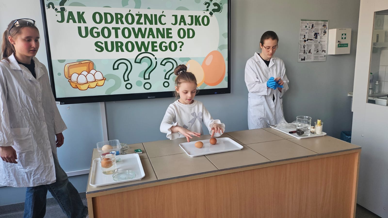 Zamiast tradycyjnego malowania pisanek postawiliśmy na naukowe widowisko. Nasi drugoklasiści z zainteresowaniem śledzili, jak jajka tracą skorupki, stając się sprężystymi piłeczkami i zmieniają kolor na srebrny. Zobaczyli, jak jajko samo wskakuje do butelki, zbadali wpływ magnesu na jajko-niespodziankę. Dzieci świetnie poradziły sobie z odróżnianiem jajka surowego od ugotowanego. Finał należał do widowiskowych mini-wulkanów oraz magicznego jajka rozświetlonego zimnym ogniem!