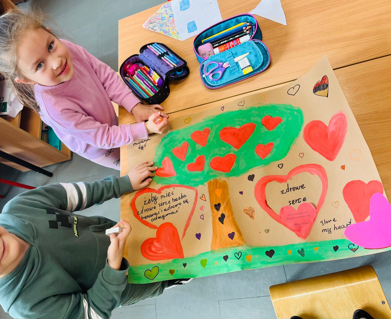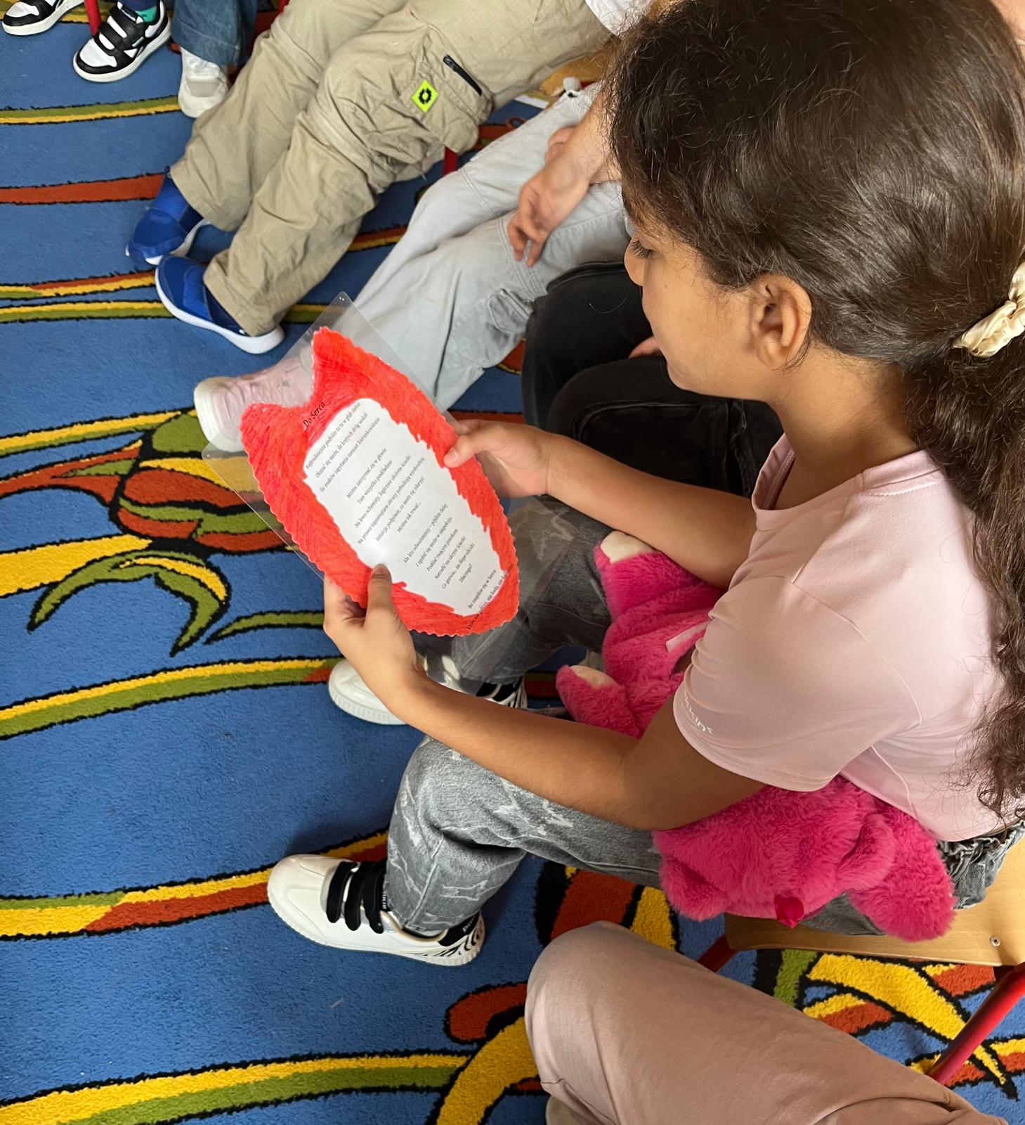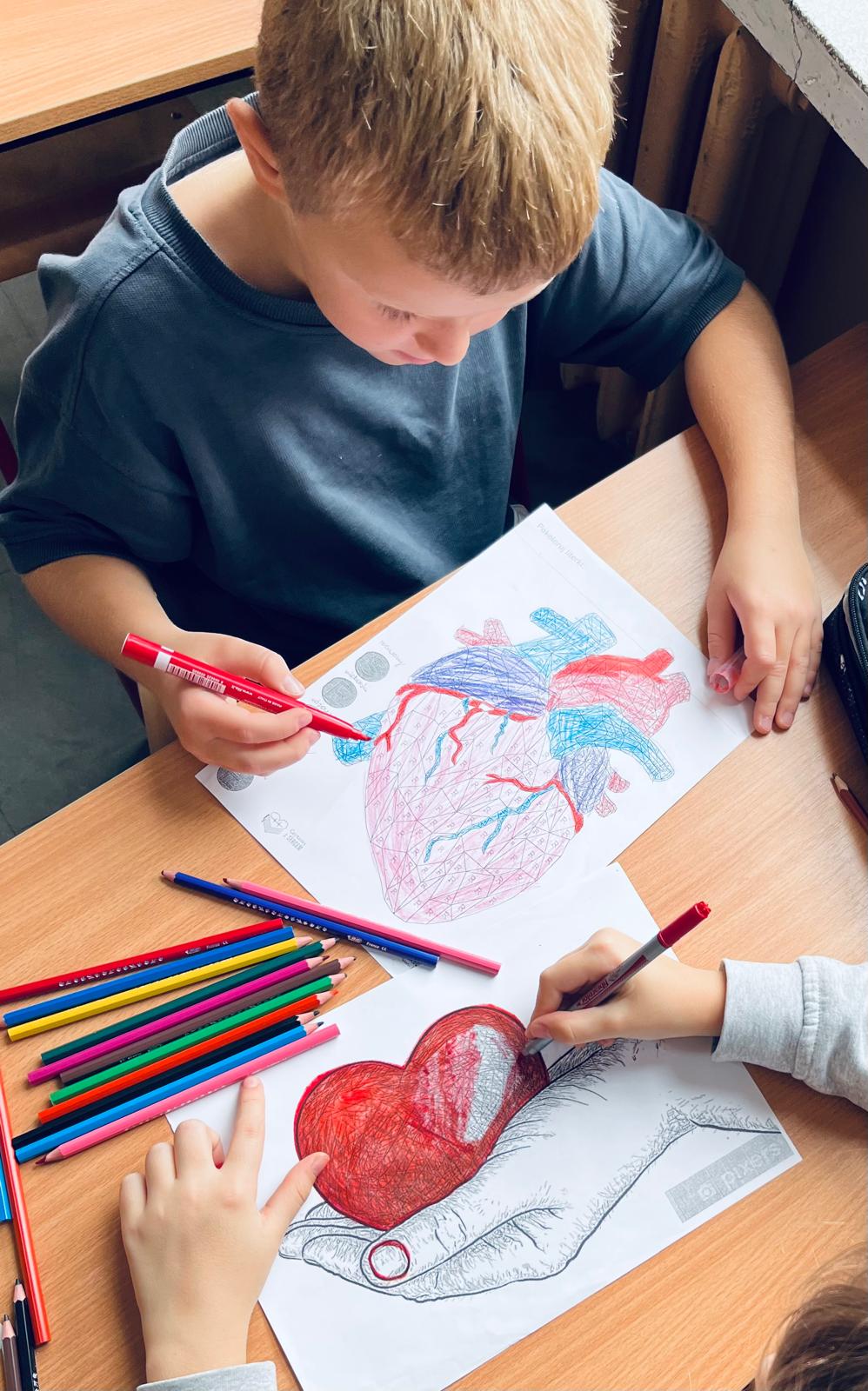 W bibliotece oraz w świetlicy odbyły się zajęcia , podczas których głośno czytaliśmy opowiadania M. Filipiaka ,,Bajka o sercu”, A. Chmielewskiej ,,Ktoś” oraz fragmenty książek ,,Dwa serca anioła”W.Widlaka i ,,Pracownia Aurory” R.Jędrzejewskiej-Wróbel . Dzieci rysowały ilustracje do tekstów, kolorowały obrazki , wycinały serca . Uczniowie wzięli udział w konkursie na zakładkę do książki pod hasłem ,,Bohater o wielkim sercu”. W ramach akcji odbyło się spotkanie z panią pielęgniarką , która omówiła funkcjonowanie serca oraz przeprowadziła pogadankę na temat zdrowego stylu życia. Na lekcjach biologii uczniowie klas starszych zgłębiali temat serca,  poprzez  prezentacje budowy i pracy serca człowieka. Podczas zajęć wychowania fizycznego młodzież zadbała o kondycję w czasie gimnastyki i spacerów . Dzięki włączeniu się w akcję poszerzyliśmy wiedzę na temat serca - jego budowy, funkcjonowania, chorób i symboliki , a także rozwijaliśmy wrażliwość na cierpienie i potrzeby osób chorych. Okazało się , że temat SERCA jest bliski nam wszystkim - zarówno miłośnikom książek jak i osobom zdolnym do empatii.
