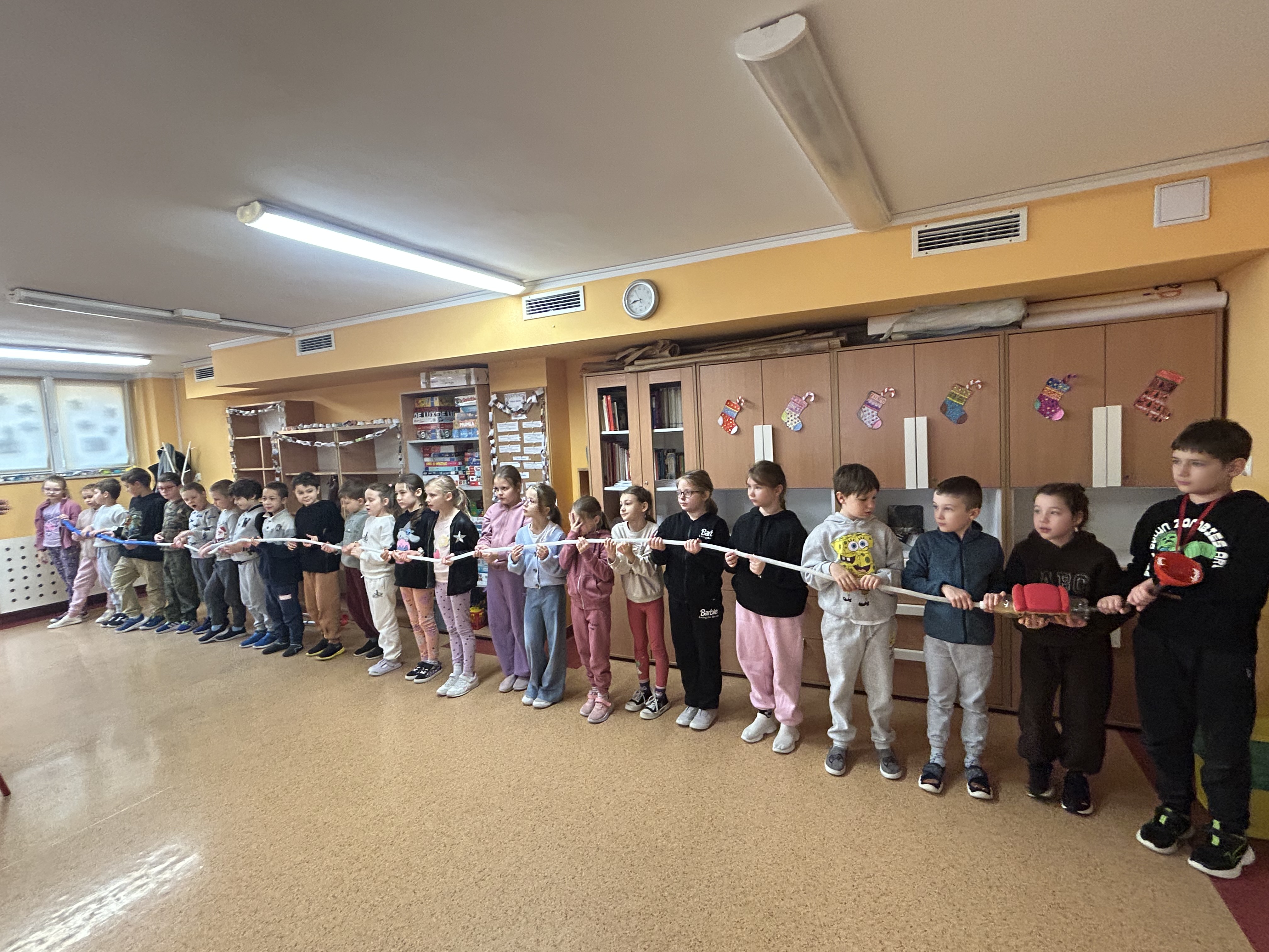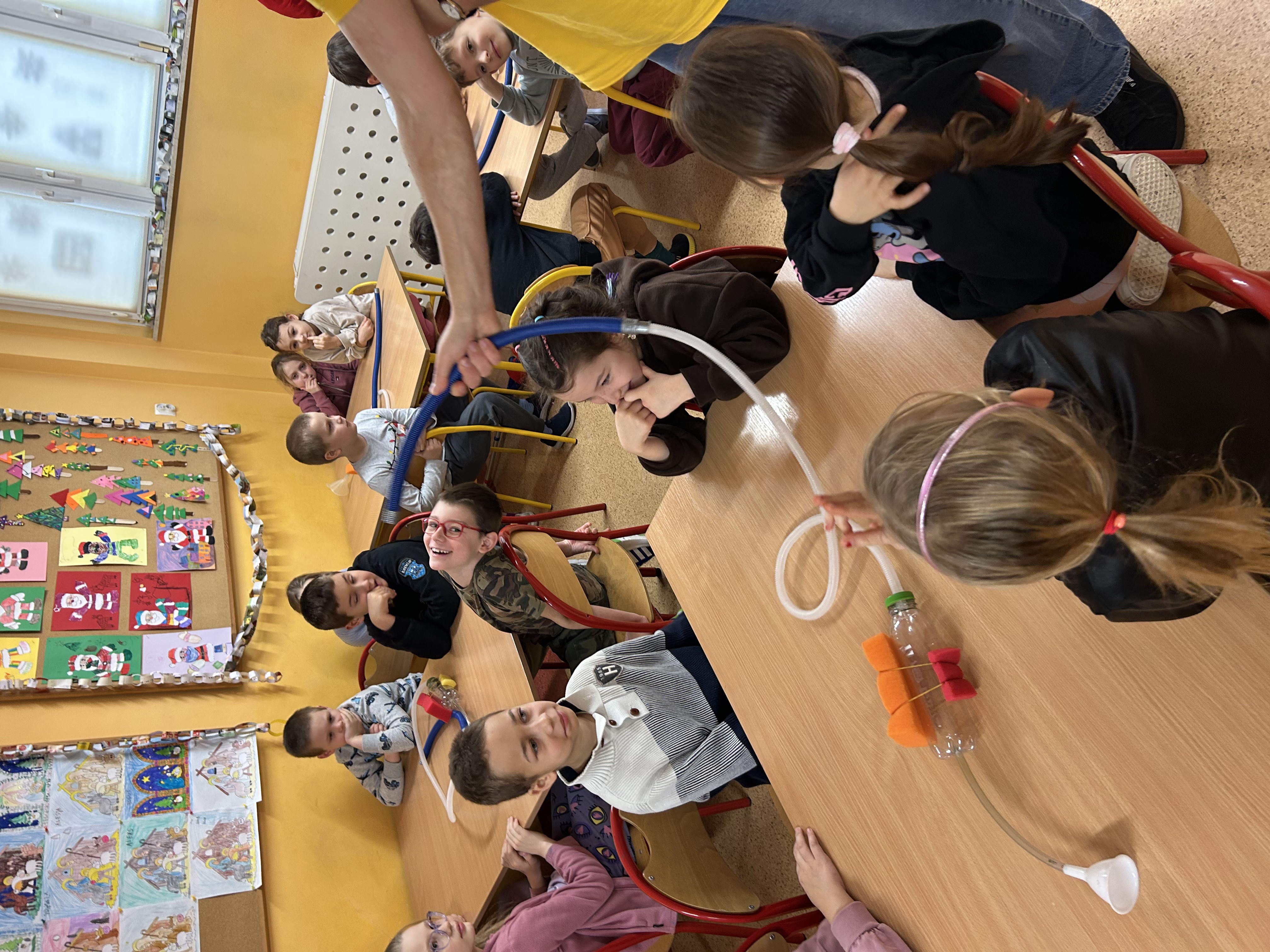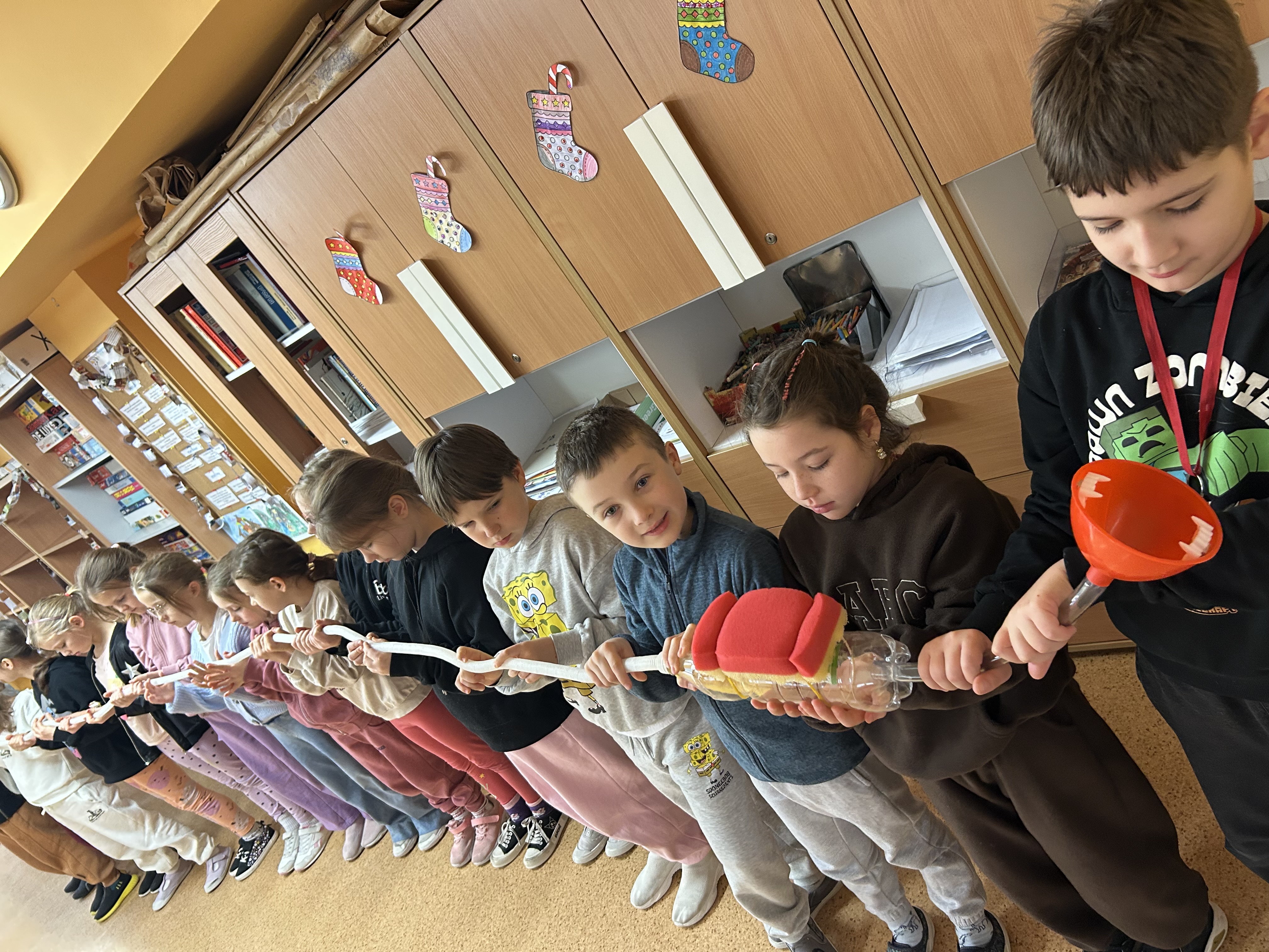 Uczniowie klas 1 i 2 wzięli udział w niezwykle ciekawych i angażujących warsztatach edukacyjnych „Zielona Mysz”, poświęconych układowi pokarmowemu. Zajęcia były prowadzone w formie nauki poprzez doświadczenie i zabawę, dzięki czemu dzieci mogły aktywnie uczestniczyć w każdym etapie warsztatów. W grupach budowały model układu pokarmowego z dostępnych materiałów, co pozwoliło im lepiej zrozumieć budowę i funkcje poszczególnych narządów. Poprzez zabawę i wizualizację procesu trawienia, krok po kroku śledzili drogę pokarmu w organizmie człowieka. Wrażenie na wszystkich zrobiła prezentacja układu pokarmowego w rozmiarach rzeczywistych, co pomogło wyobrazić sobie jak działa ludzki organizm. Warsztaty poszerzyły wiedzę uczniów i uświadomiły jak ważne jest zdrowe odżywianie i dbanie o swoje ciało.