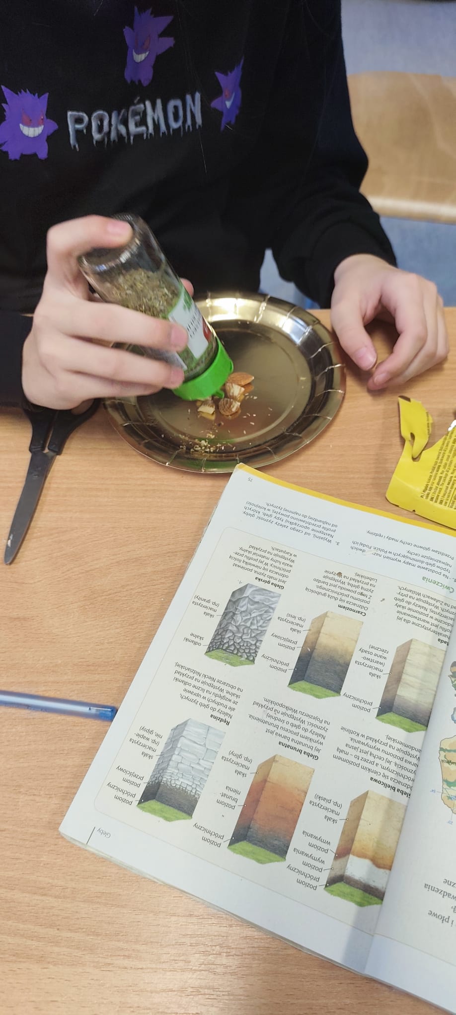 Lekcja geografii w klasach siódmych przyniosła się do kuchni. Przy pomocy bakalii i przypraw zamieniliśmy się w naukowców- kucharzy i stworzyliśmy "smaczne" modele różnych rodzajów gleb. Było kolorowo, pachnąco i zabawnie, a przy okazji dowiedzieliśmy się, że nauka o glebach nie musi być nudna.