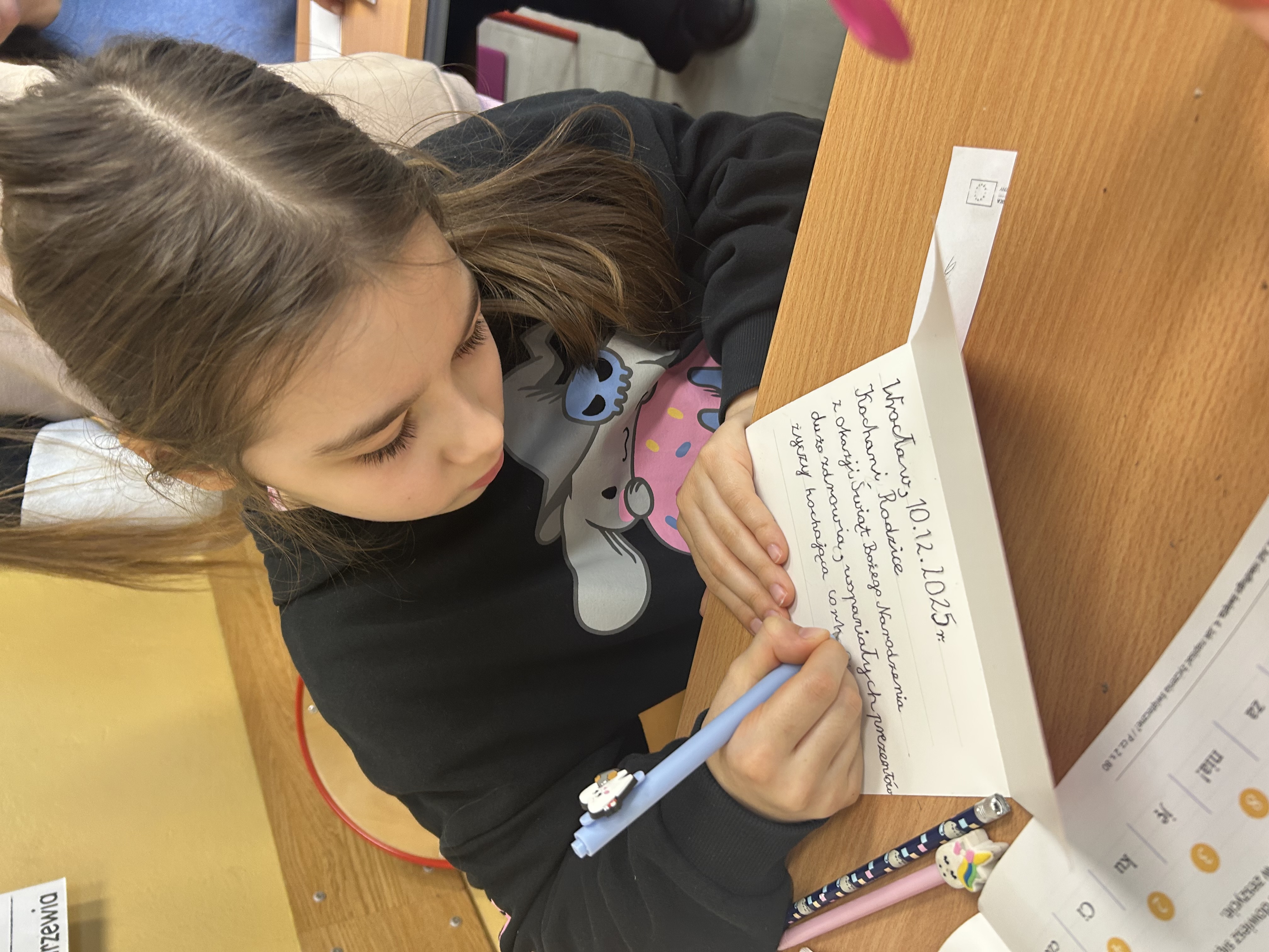 Choć we współczesnym świecie królują SMS-y i e-maile, uczniowie klasy 2a postanowili wrócić do pięknej tradycji pisania życzeń i wysyłania papierowych kartek świątecznych 🎄.